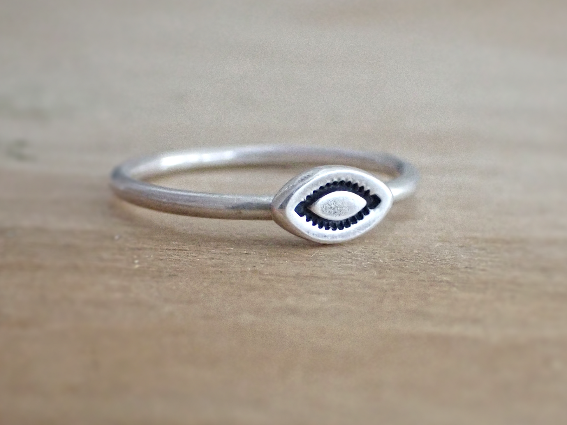 Once they are filed and sanded, I solder each of these little stamped elements onto a simple polished ring band and oxidise them to let the detail stand out.